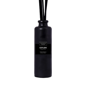 Treatments - TC11 - Fragrance sticks - Ceylon - 150 ml Perfect voor gebruik in het hele huis: van woonkamer tot badkamer, slaapkamer en toilet. Gebruik: Plaats de natuurlijke stokjes en vul de parfum in de elegante zwarte keramieke vaas. Dit is een formule waarbij het niet nodig is de stokjes om te draaien. Als je wel een extra geurervaring wilt, draai je de stokjes naar wens om; was je handen daarna met water en zeep. Let op: als je de stokjes vaak omdraait, kan het zijn dat ze minder lang meegaan. Dream along to Authentic Ceylon
